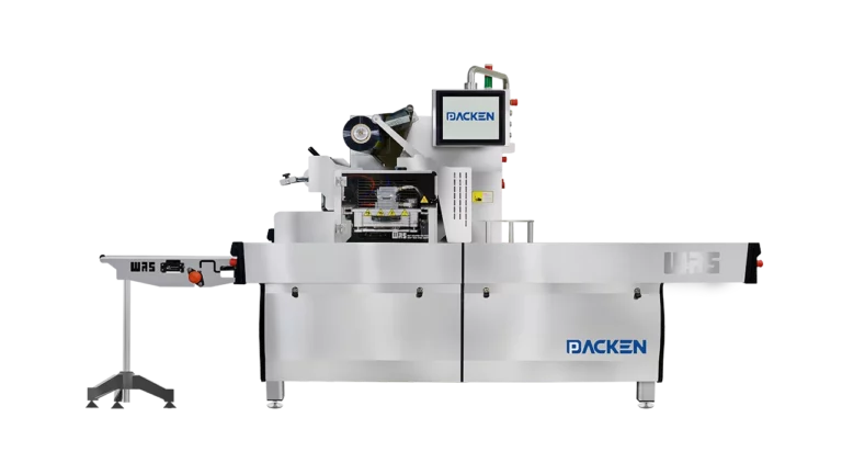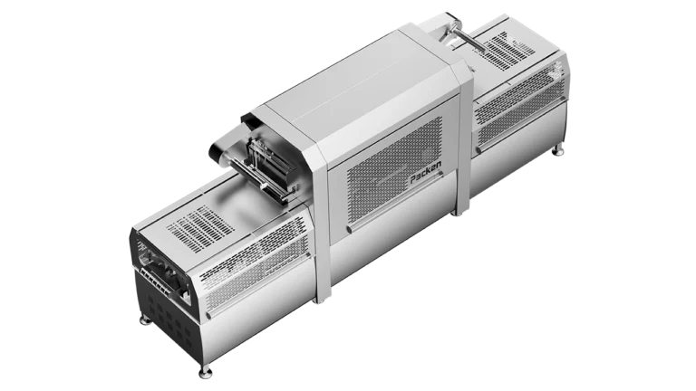 The automatic seal vacuum machine (automatic tray sealer) can package food products in plastic trays with high speed, accuracy, and quality automatically and continuously. This machine automatically and easily loads (transports) the trays into the mold and brings the packaged products out of the machine. The automatic tray sealer is one of the products designed and manufactured by the talented and experienced engineers of Packen Company.