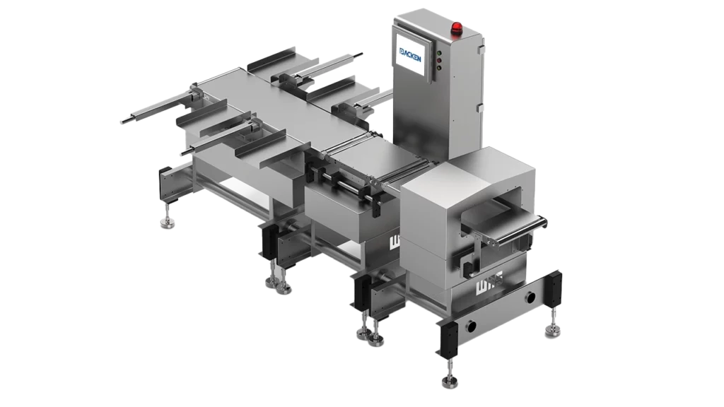 Das häufigste industrielle Metalldetektor-Modell ist der Förderbandsystem-Metalldetektor (Conveyor-System), der leicht in jede Lebensmittelproduktionslinie integriert werden kann, da er verschiedene Größen, Förderbandkonfigurationen und Sensoren bietet. Verunreinigungen können automatisch entfernt werden, sobald sie von verschiedenen Verunreinigungsentfernungsgeräten erkannt werden.