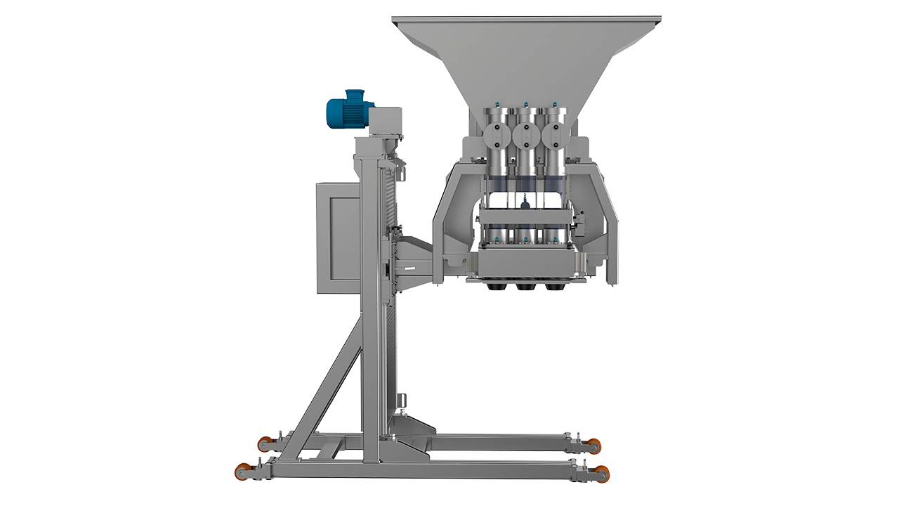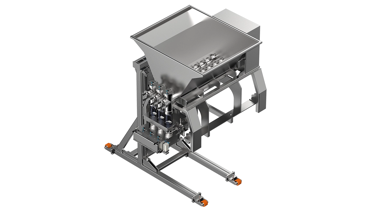 The volumetric filler is used for filling various products that cannot be filled into trays by a weighing filler due to their shape and texture.